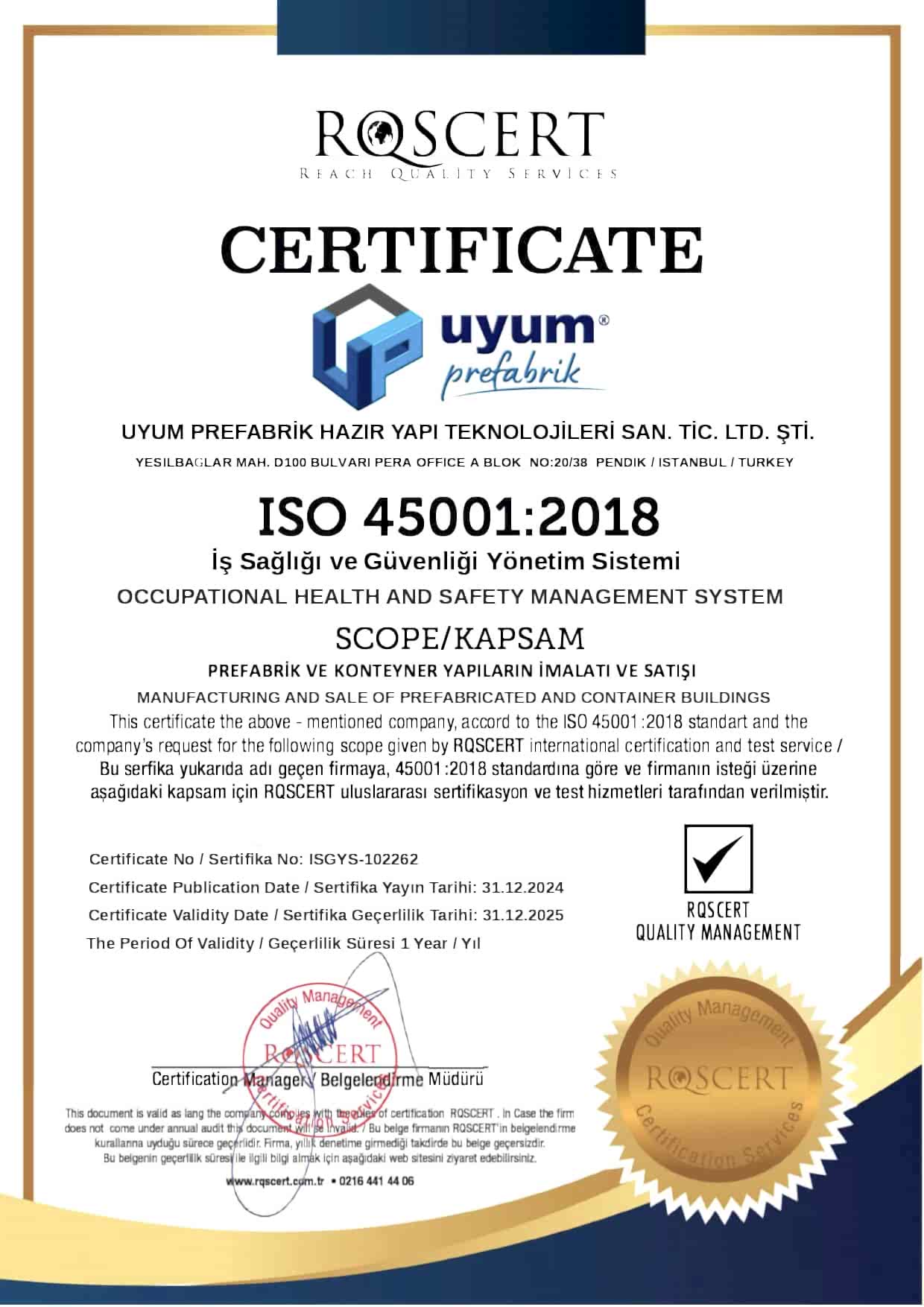 UYUM PREFABRİK, hazır yapı sektöründe kazandığı deneyim ve tecrübesiyle sektörde başarılı projeler gerçekleştirmeyi benimsemiş sektörün iddialı markalarındandır. Çevre dostu ürünler kullanarak, ekolojik çevreye saygılı, yarınlarına sağlıklı yaşanabilir dünya bırakmak adına sorumluluk bilinci taşımaktadır.