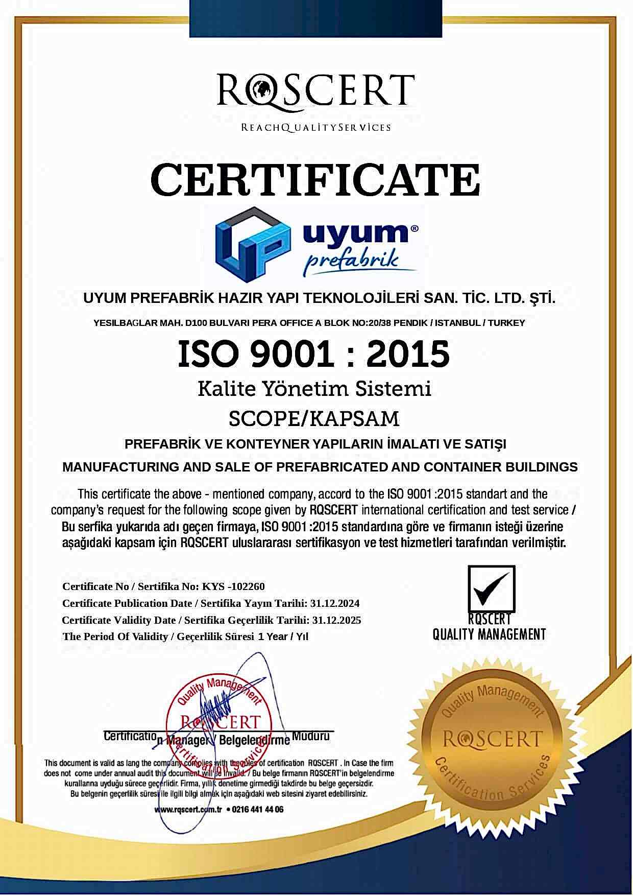 Günümüzde “Kalite” anlayışı bir çok şirkette vazgeçilmez bir değer olarak yerini almış olsa da, UYUM PREFABRİK'de kalite, insan sağlığı ve doğallığın vazgeçilmezi olarak değerlendirilir.